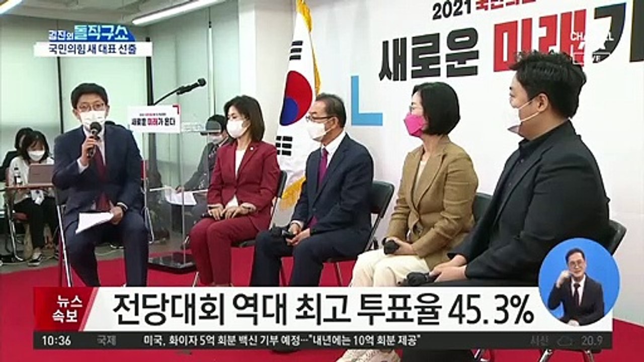 이준석 국민의힘 당대표 후보가 당권 경쟁자인 나경원 후보가 제기한 이준석의 '윤석열 배제론'을 국민의힘 당대표 선거에서 이준석 후보의 지지율이 41.3%로 또 한 번 1위를 기록했다는 여론조사.